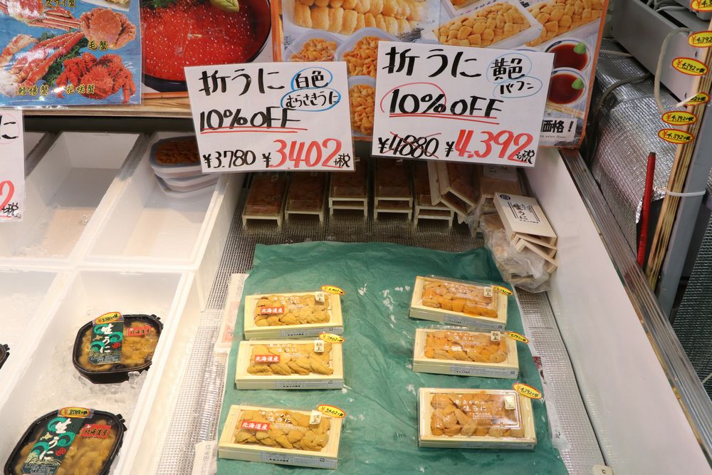 北海道に来たら、やっぱりエゾバフンウニを喰わんなんやろ。味は濃厚で甘みもあって旨かった (税込み 5,148円)。