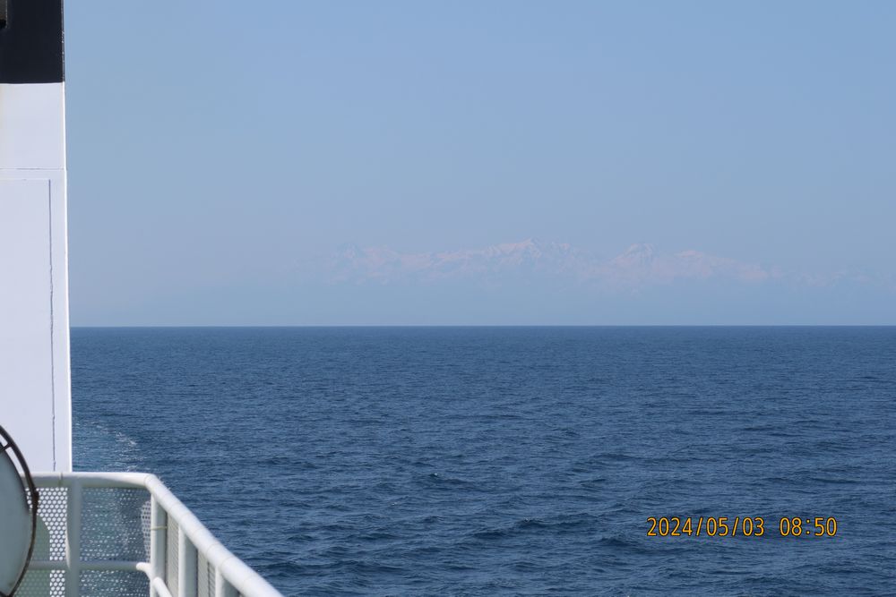 2時半に出発し、途中有磯海で休憩し、フェリーターミナル近くのコンビニで朝食の調達。