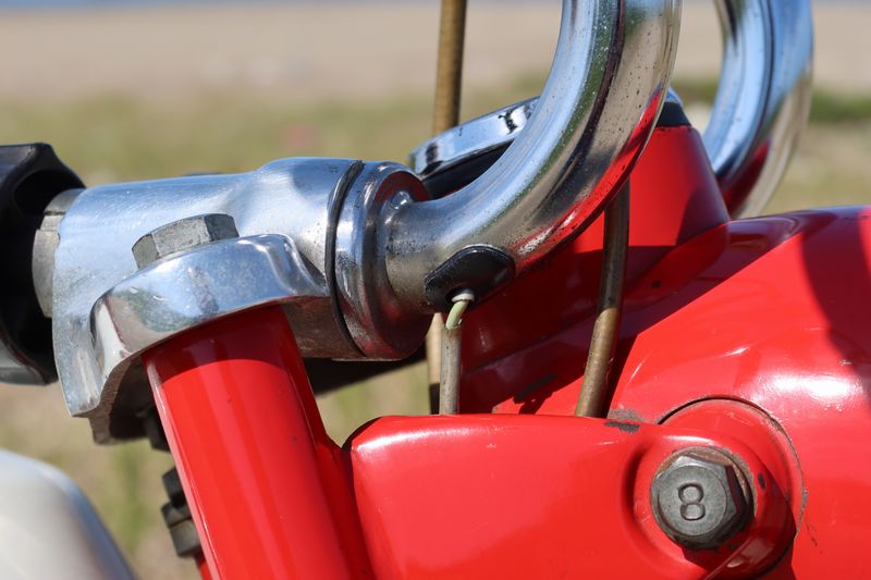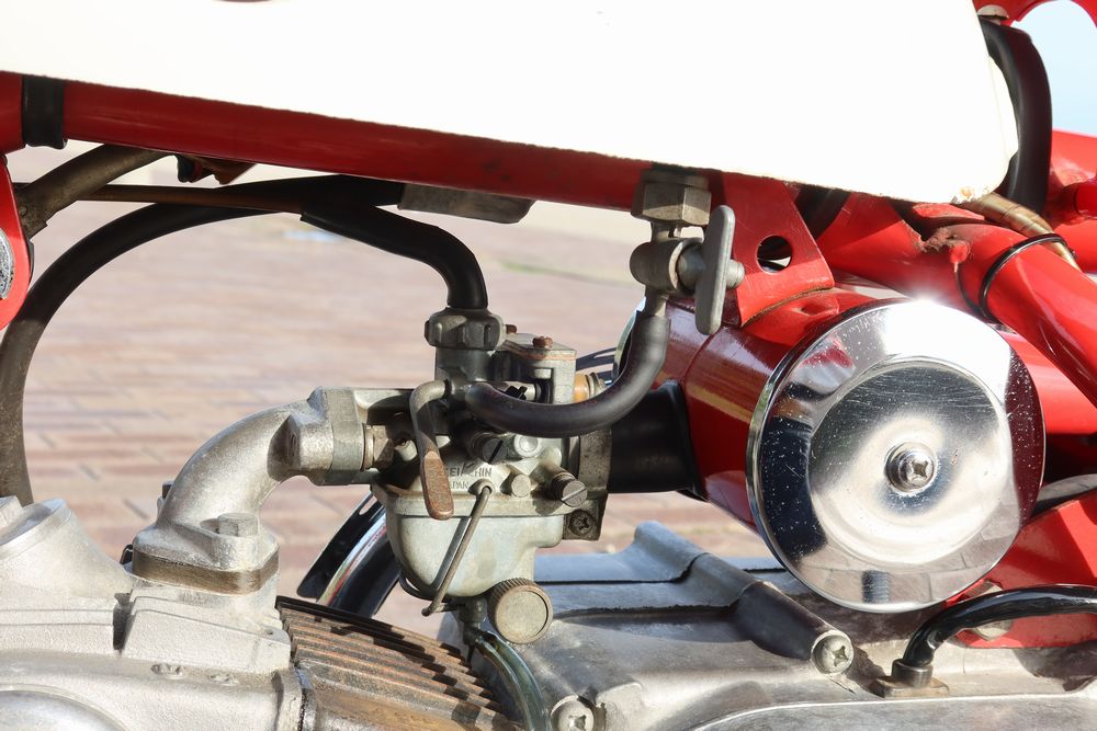 M専用オリジナルのキャブに蝶タイプの燃料コック。