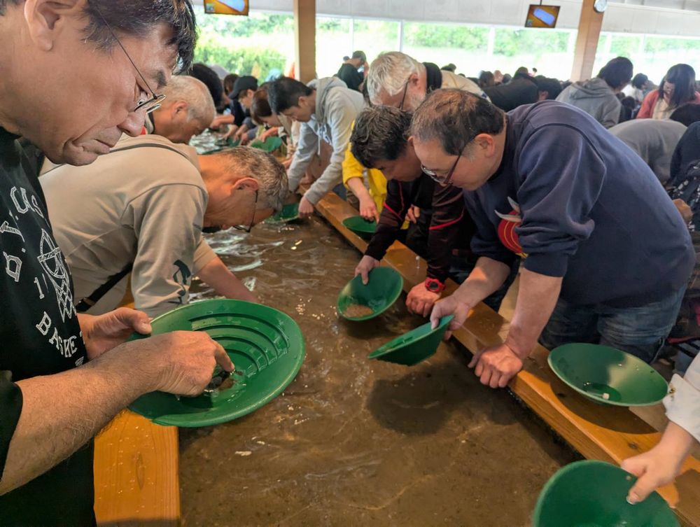 また、短い山道を楽しんで、西三川ゴールドパークへ。ここで砂金堀体験。