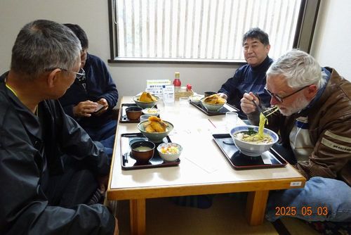 ミッションを無事済ませて、大野亀ロッジで昼食。