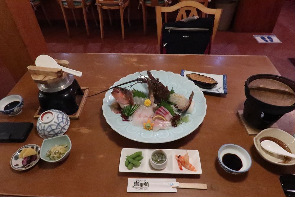 今日の夕食は昨日よりワンランクアップして「おこぜづくしプラン(1泊2食付 15,000円)」。